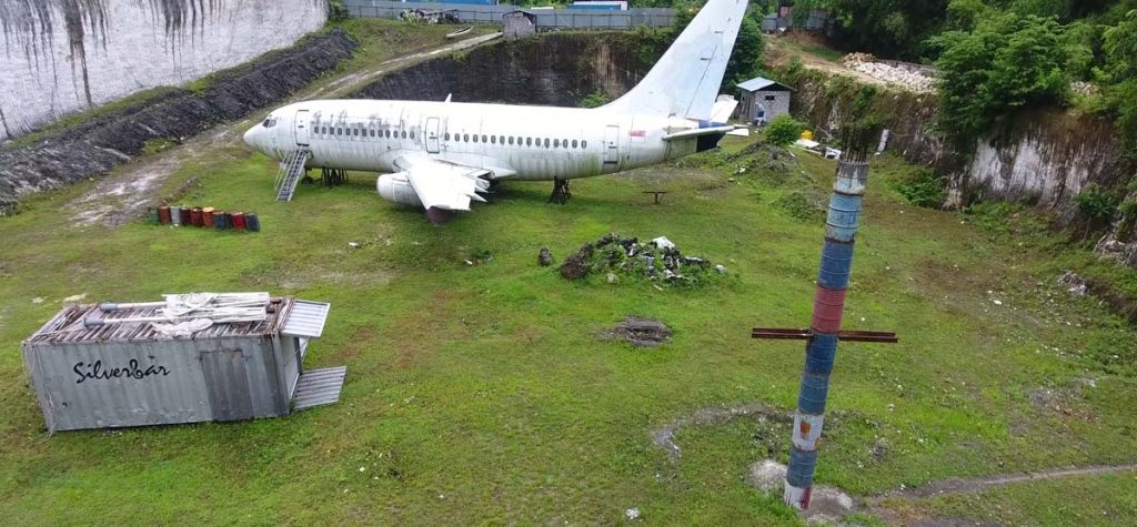 По одной из версий, один бизнесмен из Денпасара решил сделать необычный ресторан внутри настоящего Боинга. Но что-то пошло не так и строительство забросили. И этот выглядел бы весьма правдоподобно, если бы не одно но: никто из местных жителей в округе не видел, как самолёт привозили или собирали. Если бы такую бандуру везли бы целиком, то пришлось бы перекрывать дороги. Ведь на Бали они не такие широкие, чтобы свободно проехал грузовик с негабаритным грузом. А если бы Boeing привозили частями, то не один день понадобился бы на монтаж. По словам очевидцев самолёт просто появился из неоткуда! День назад его не было, а тут бах – и стоит!